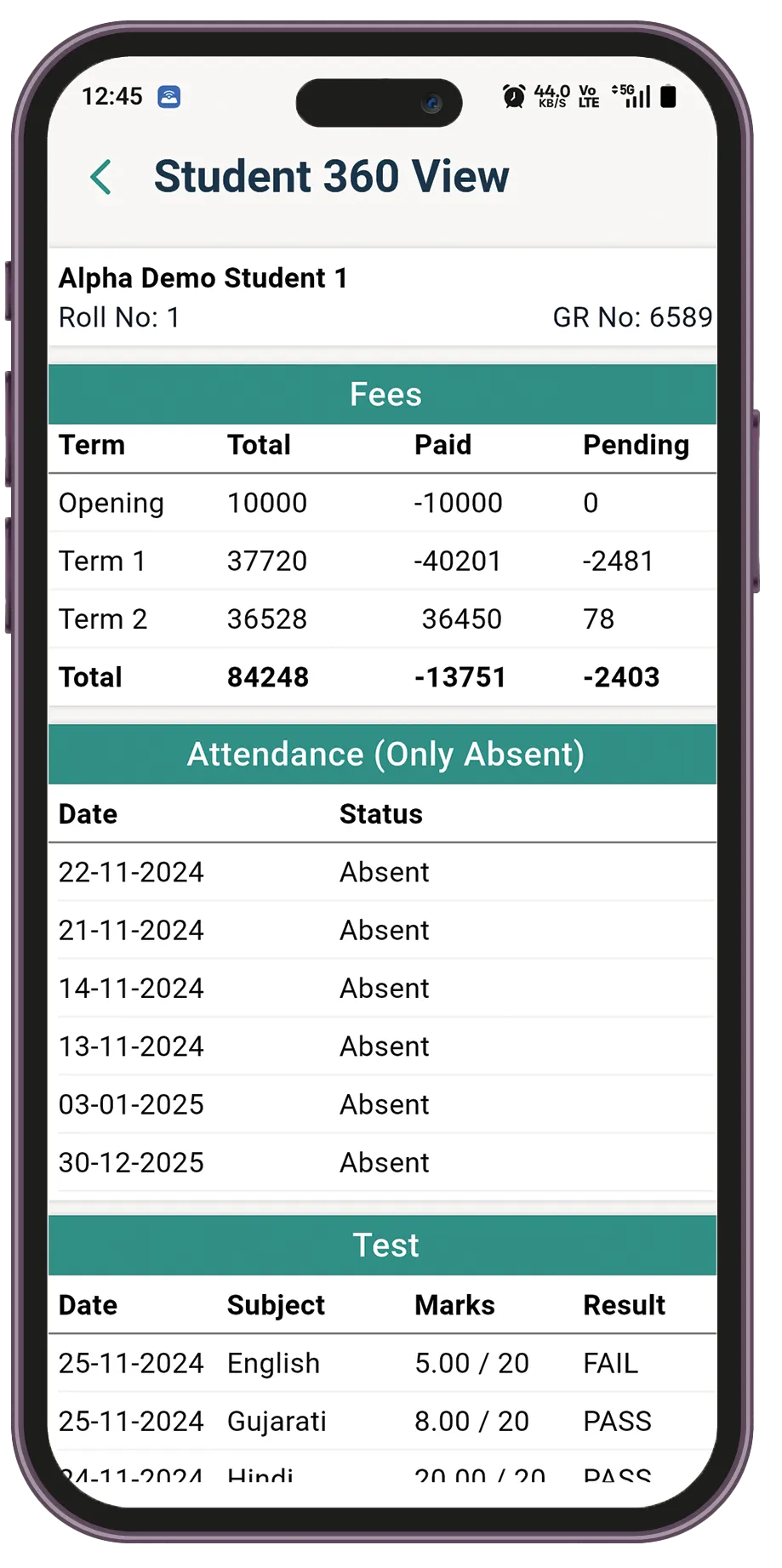 One app for complete student lifecycle management — from attendance to results.